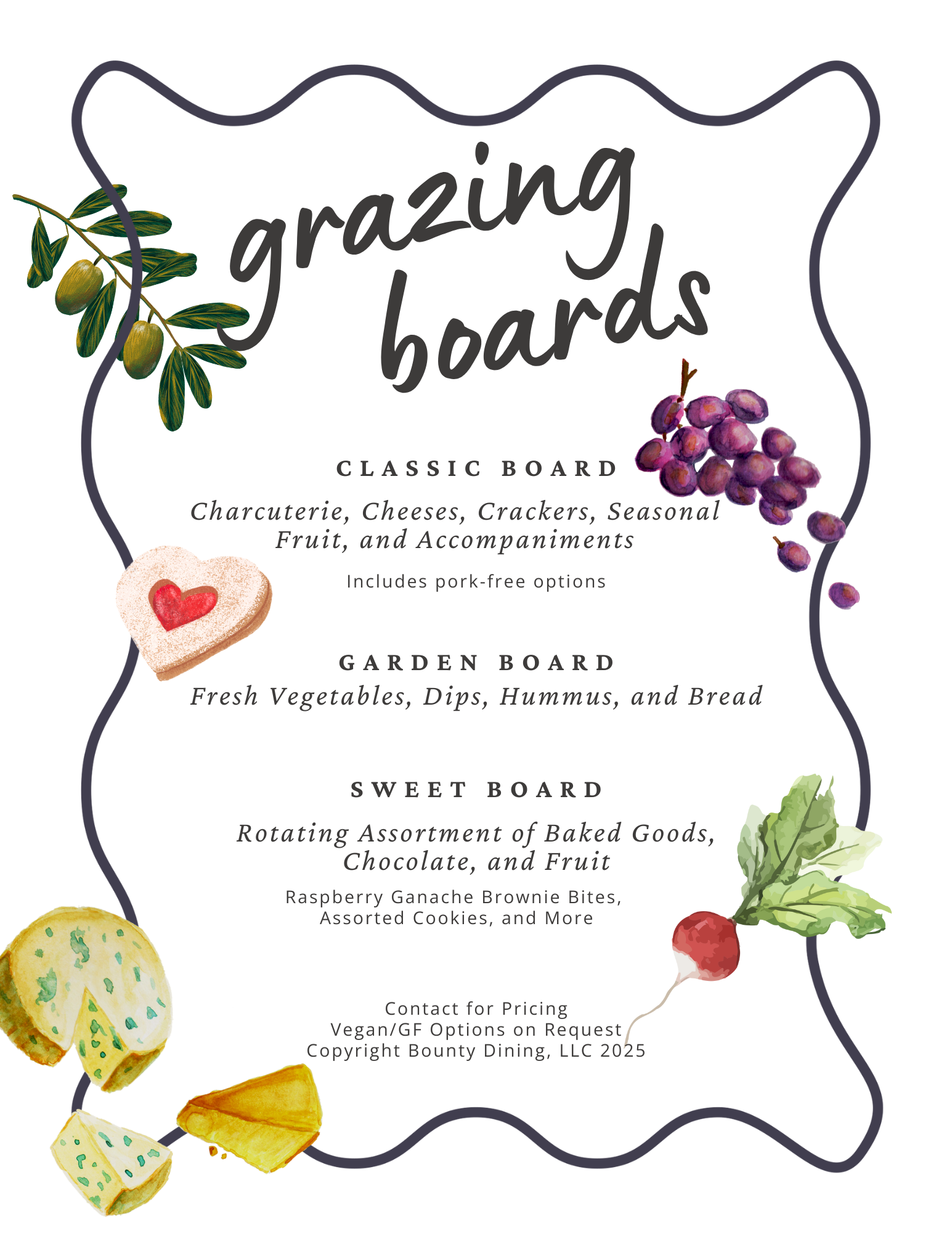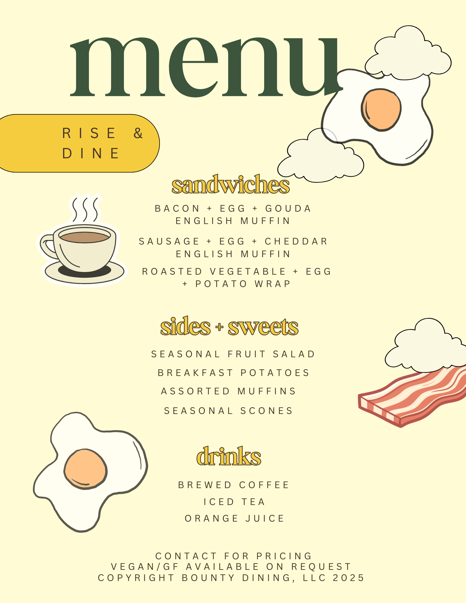Whether you’re hosting a meeting, family gathering, or event, each menu can be served as a Drop-Off Buffet, Drop-Off Grab & Go, or Full-Service Buffet.